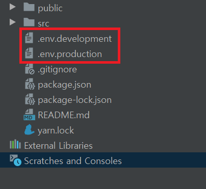 각 파일에 변수를 정할 때 앞에는 REACT_APP_ 를 붙혀야 합니다.