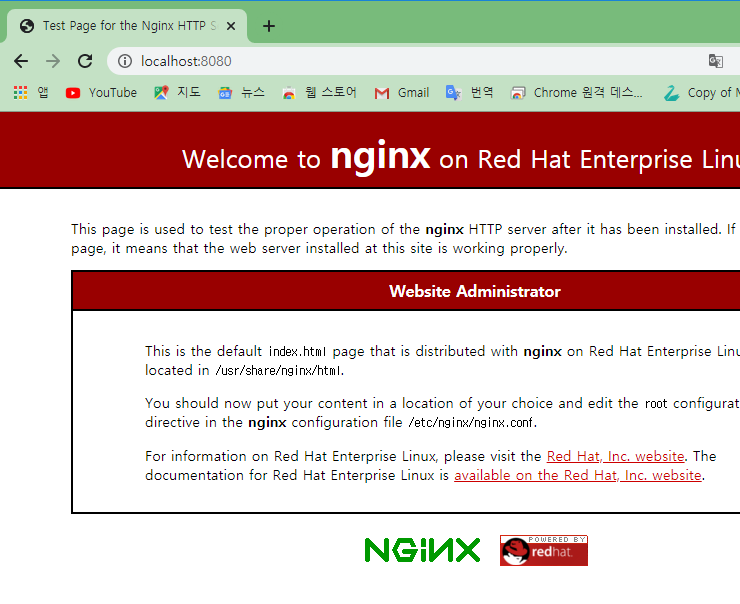 그리고 docker 외부의 PC 의 웹 브라우저를 실행해서 localhost:8080 을 입력해 봅니다.