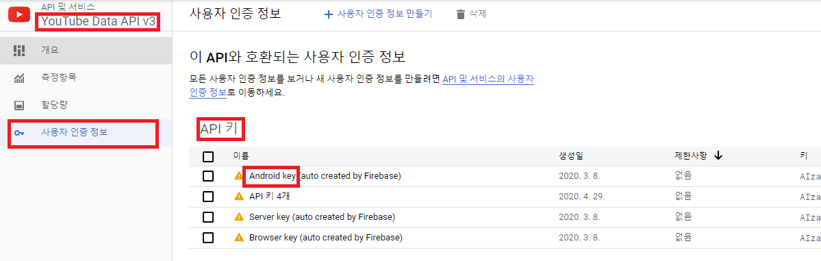 1. android api key 생성