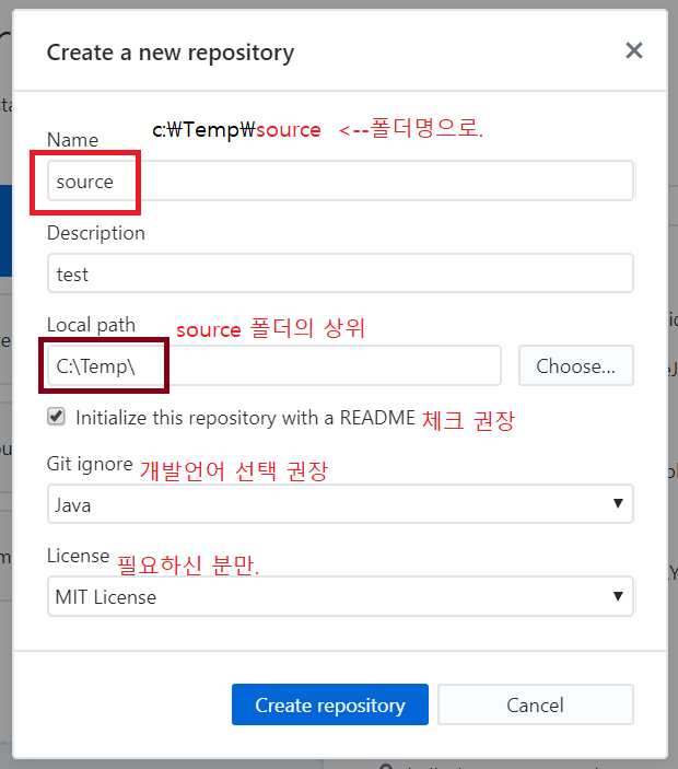 제 로컬에만 소스가 있었는데, 이걸 github 의 repository 로 공유하고 다른사람과 개발을 같이 해야할 때가 있죠.