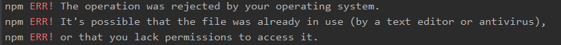 cmd 창을 관리자 권한으로 실행해서 npm install 을 해도 마찬가지였습니다.