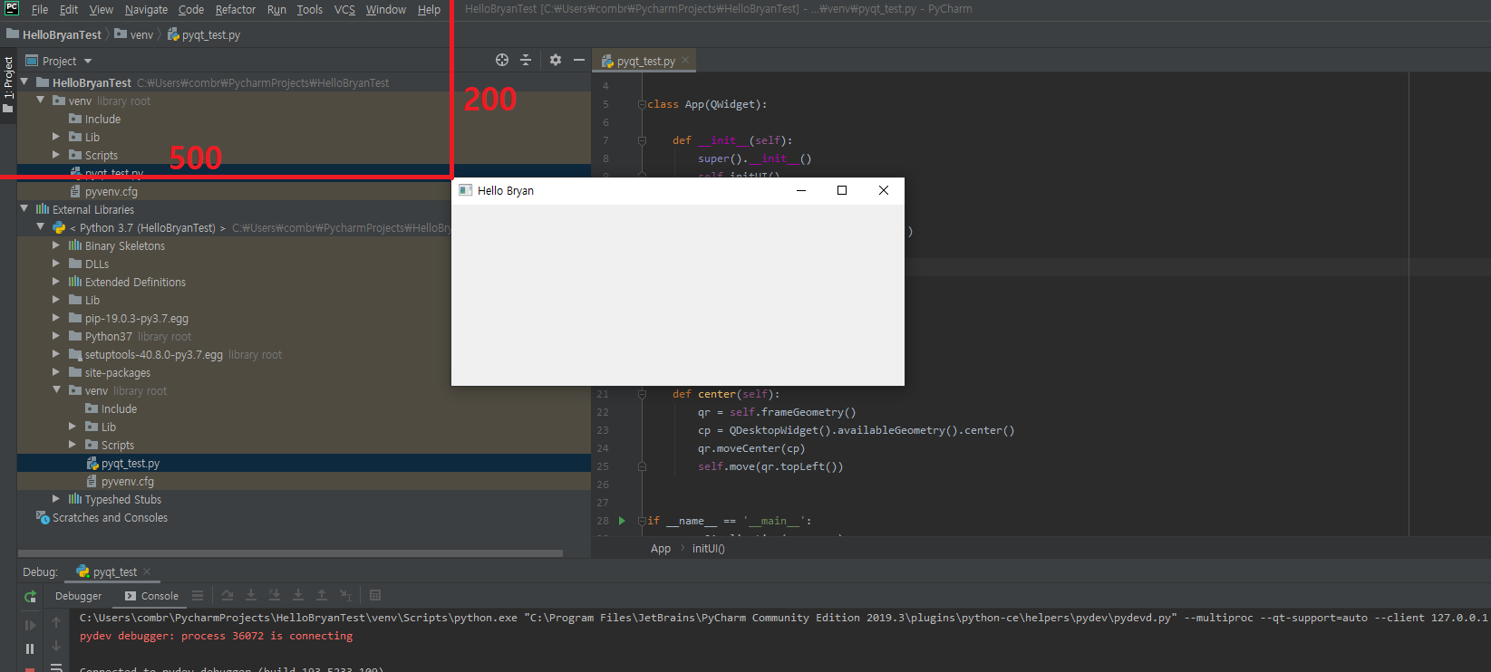 self.move(500, 200) # 좌상단 위치