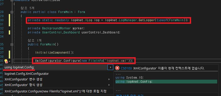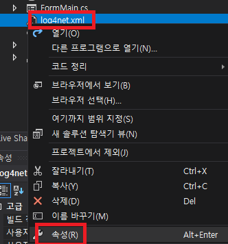 그리고 프로젝트 root folder 에 log4net.xml 파일을 작성합니다.