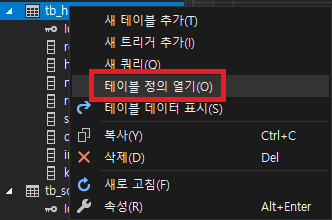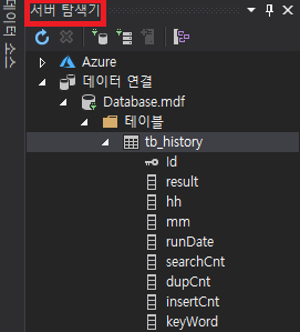 서버 탐색기에서 생성된 LocalDB 파일을 선택하고 테이블을 선택합니다.
