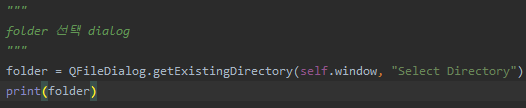 folder = QFileDialog.getExistingDirectory(self.window, "Select Directory")
