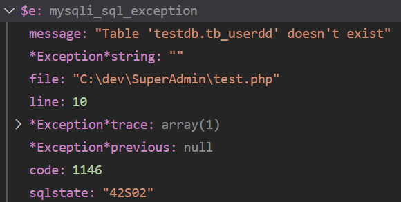 } catch (mysqli_sql_exception $e) {