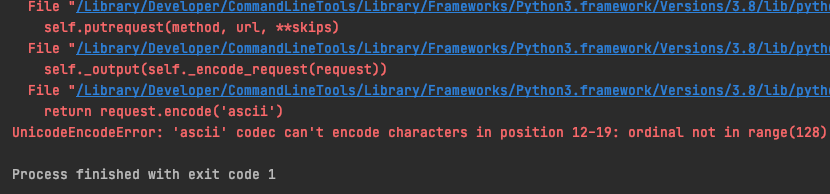 이건 한글 뿐만 아니라 ascii 코덱이 인코딩 못하는 문자가 있을 때 발생합니다.