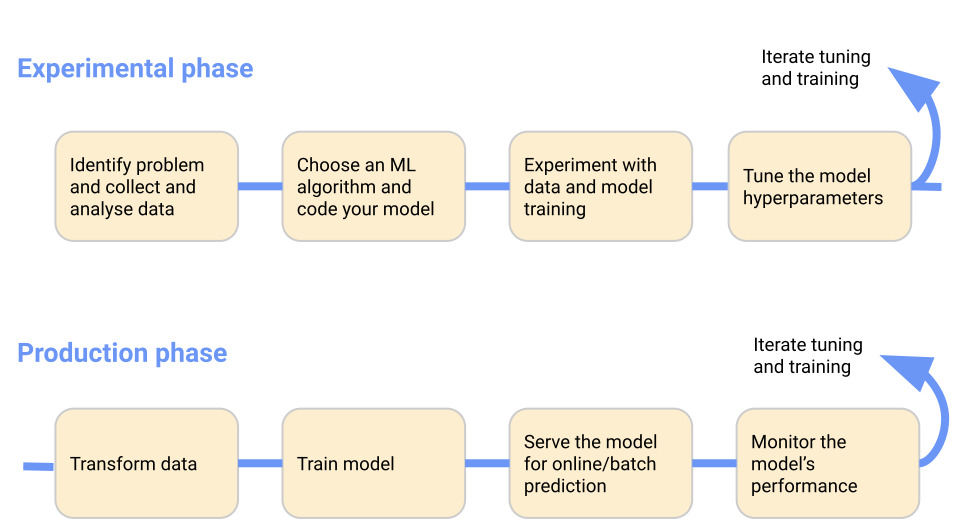 ML 시스템을 개발하고 배포 할 때 ML 워크 플로는 일반적으로 여러 단계로 구성됩니다. ML 시스템 개발은 반복적 인 프로세스입니다. ML 워크 플로의 다양한 단계의 출력을 평가하고 필요한 경우 모델 및 매개 변수에 변경 사항을 적용하여 모델이 필요한 결과를 계속 생성하도록해야합니다.