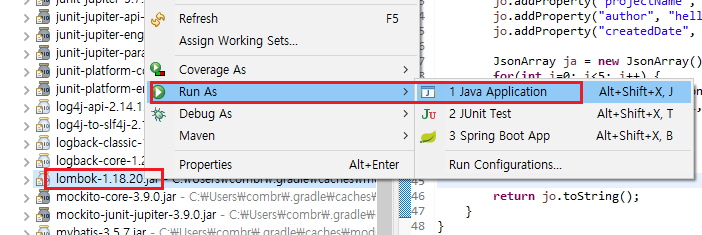 jar 파일에서 우클릭 후 Run As -> Java Application 클릭.