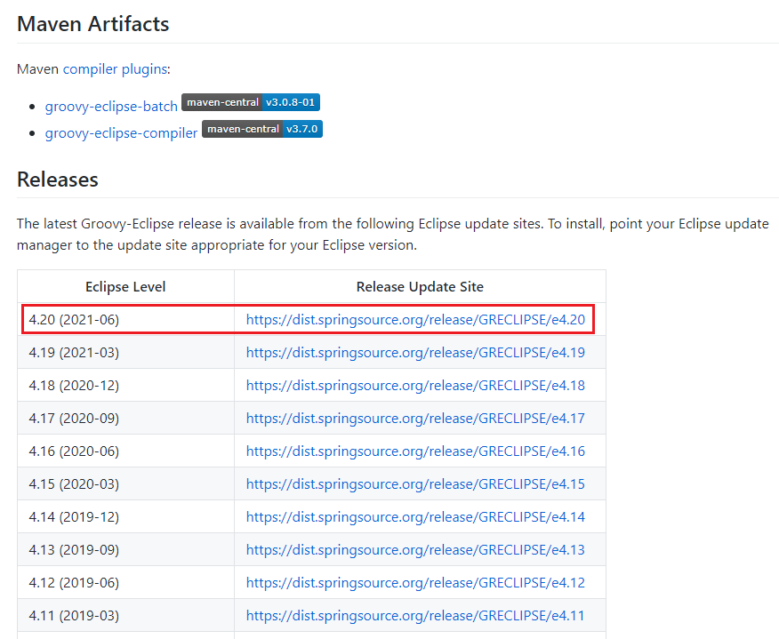 그리고 아래 groovy-eclipse git 사이트에서 release 정보를 확인하고 링크를 복사합니다.