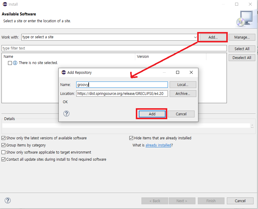 - 2021.07.04 - [Java] - Eclipse 에 groovy 설치 하기