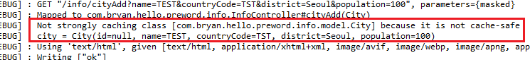 호출 : http://localhost:8000/info/cityAdd/TEST/TST/Seoul/100