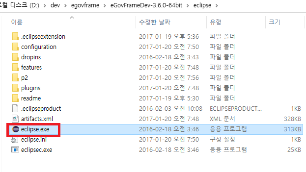 압축 풀린 곳에서 eclipse.exe 를 실행.