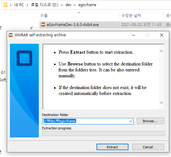 개발환경을 구성할 경로에 이동시킨 후 exe 파일을 실행시킵니다.