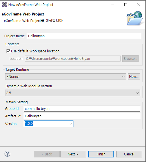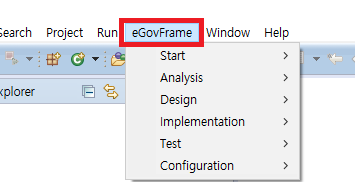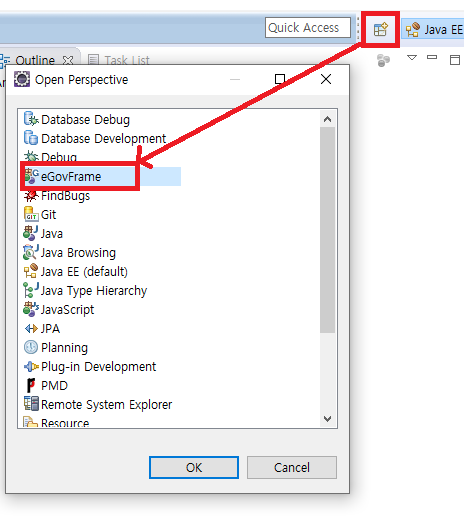 eclipse가 정상적으로 실행되면 우측 상단의 Perspective가 eGovFrame으로 되어있는지 확인한다.