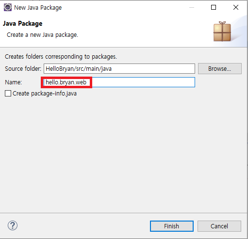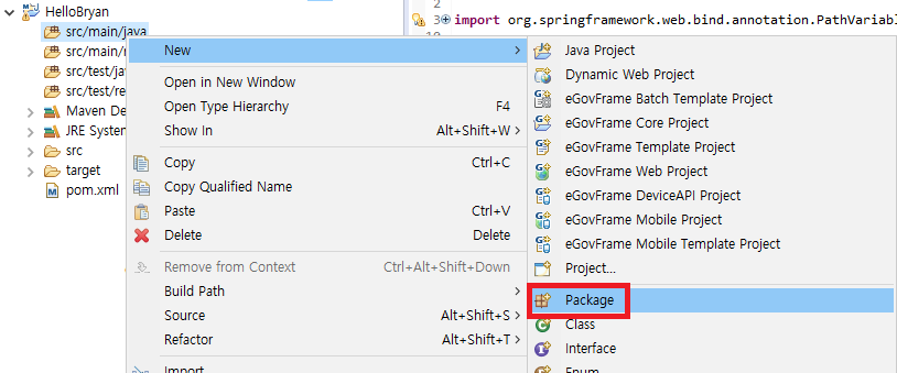 위에서 만든 package 아래에 java class 생성. (package 에서 우클릭 > New > Class)