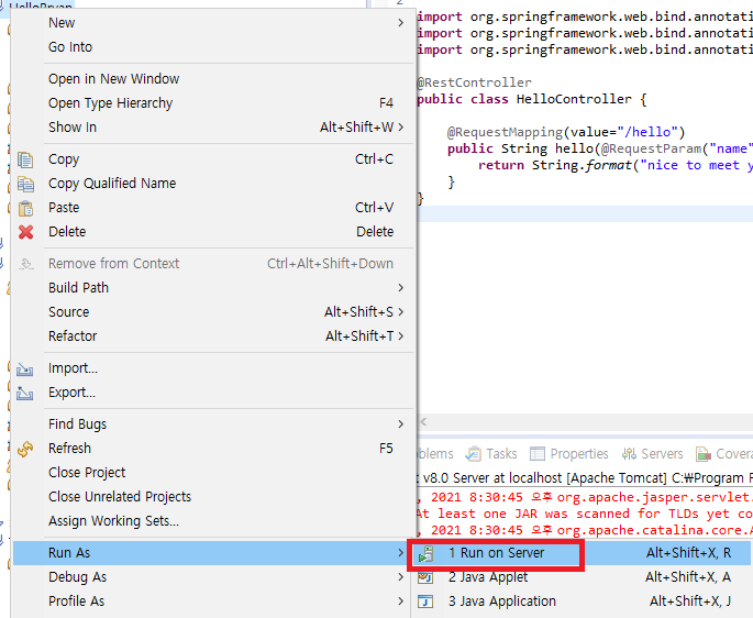 pom.xml 저장하고 프로젝트 우클릭 > run as > maven clean > maven install