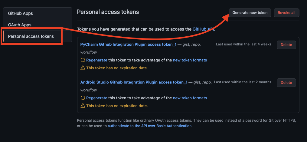 해석하면 "비번ㄴㄴ, personal access token ㄱㄱ" 라네요.
