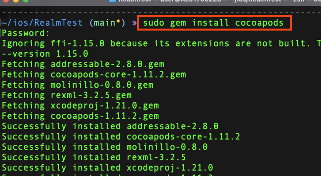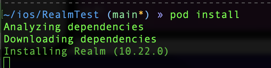 터미널에서 install 하기 전에 코코아팟이 최신버전의 Realm 을 받아올 수 있도록 업데이트 해줍니다.