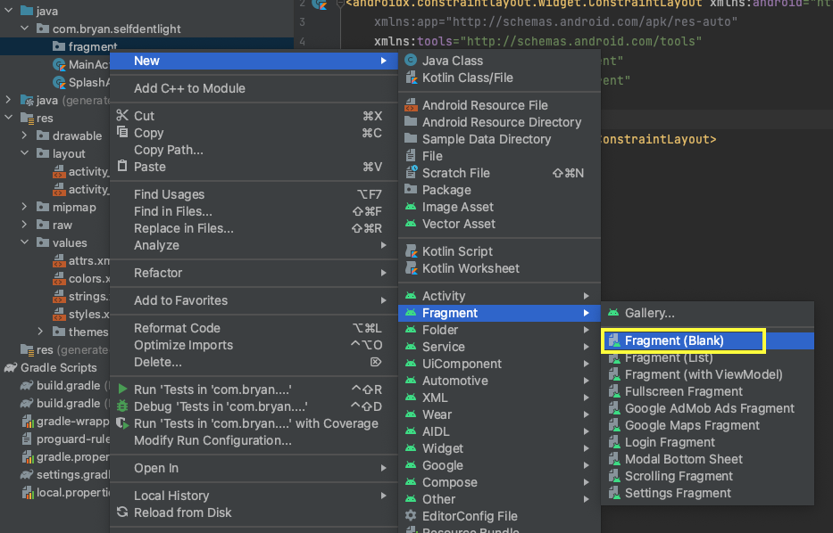 (프로젝트가 크다면, fragment 들을 기능별로 나누는게 좋습니다)