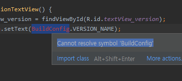 BuildConfig 를 못찾는다는 메시지는 안나옵니다.