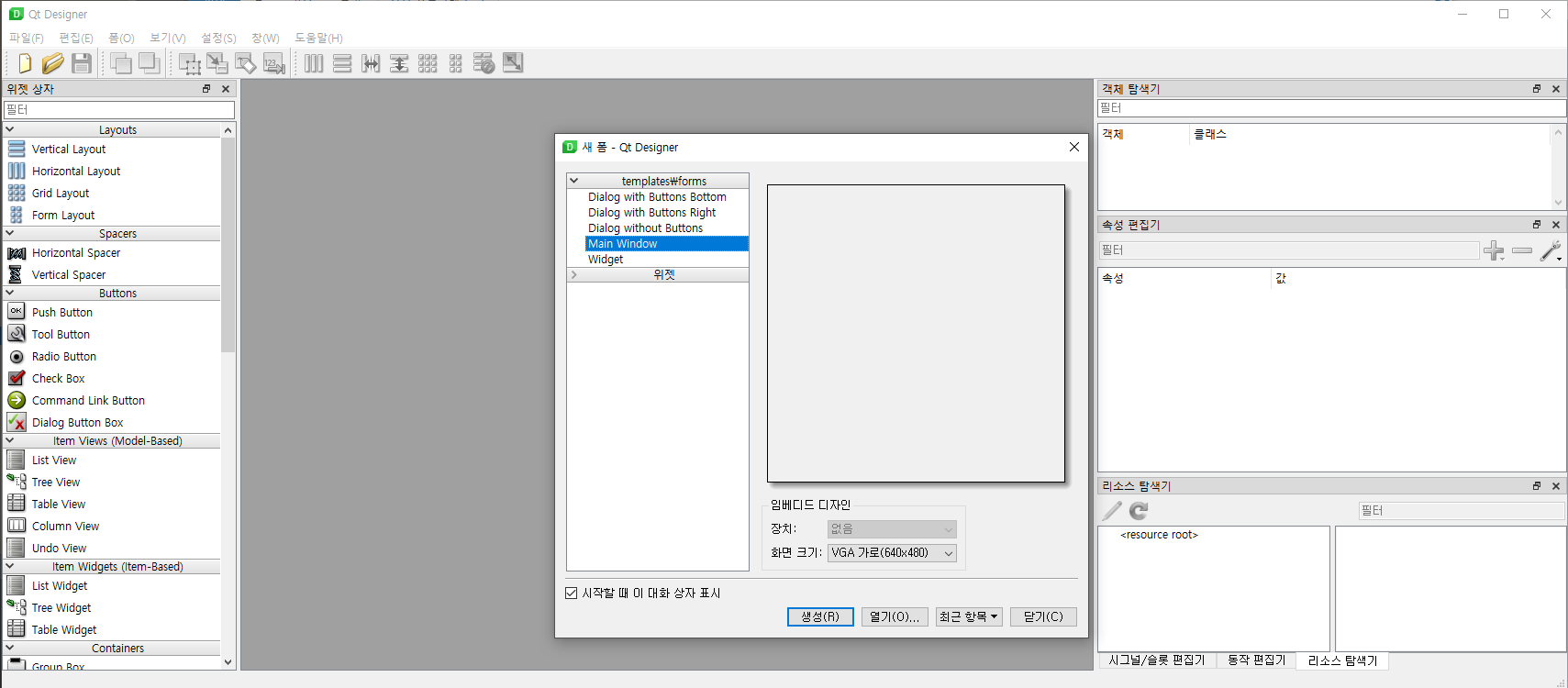 저 exe 를 실행하면 PyQT UI Design tool 이 뜹니다.