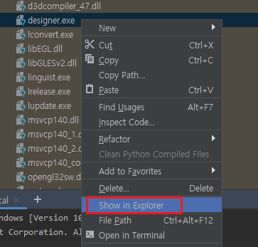 우클릭 해서 Show in Explorer 를 누릅니다.