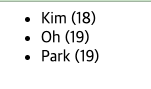 data 의 cars 배열을 for 문으로 li 들을 뿌려주는 예제입니다.