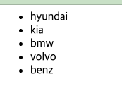 cars: ['hyundai', 'kia', 'bmw', 'volvo', 'benz']