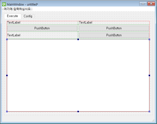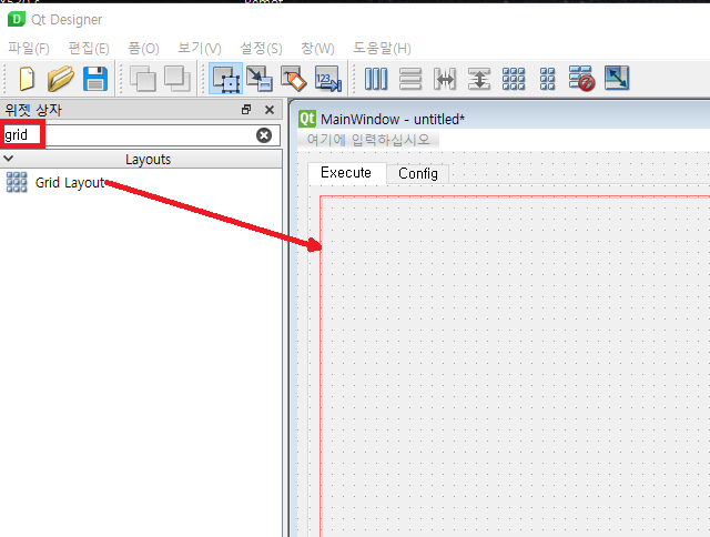 이전에 하던 Window 에 Tab Widget 안에 Grid Layout 을 추가합니다.