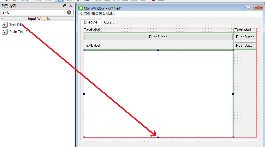우선 Text Edit 를 Grid 하단으로 추가합니다.