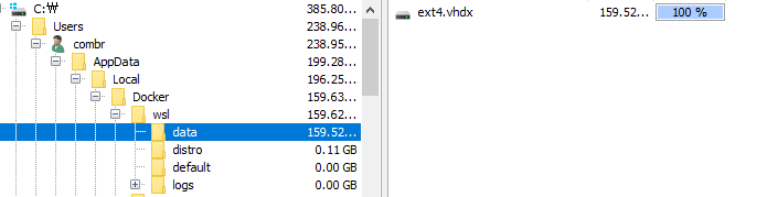 C드라이브 docker/wsl/data 에 160GB 짜리 ext4.vhdx 파일이 삭제됩니다.