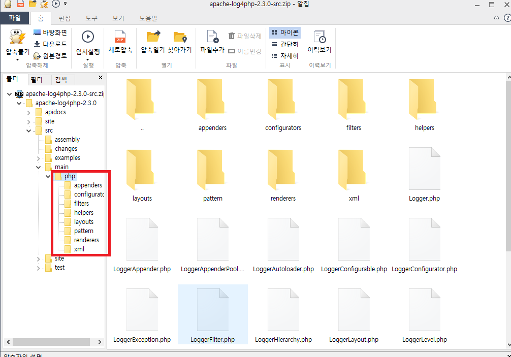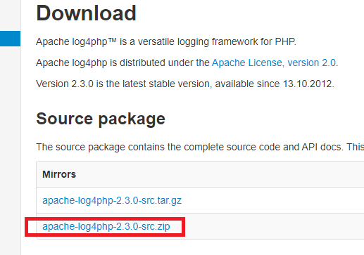 a. apache log4php 공식 홈의 다운로드 페이지에서 다운로드 합니다.
