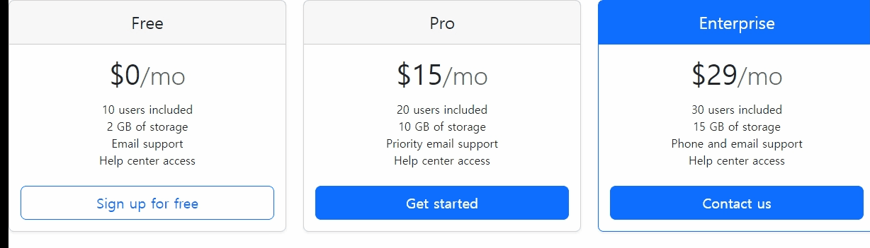 <h1 class="card-title pricing-card-title">$15<small class="text-muted fw-light">/mo</small></h1>