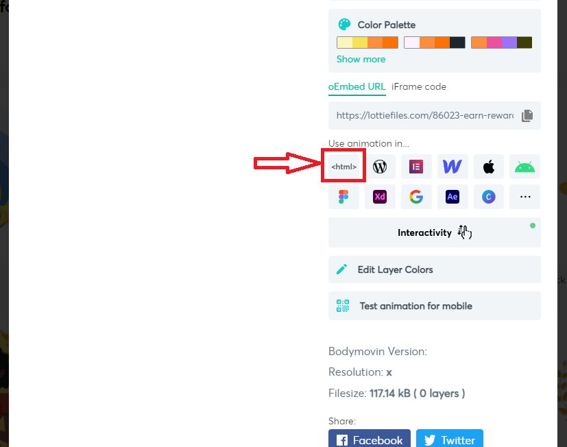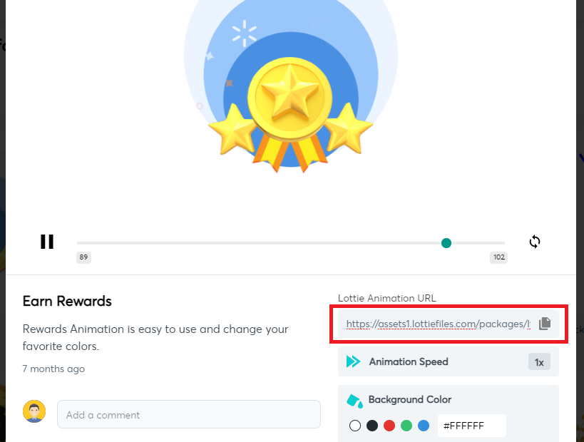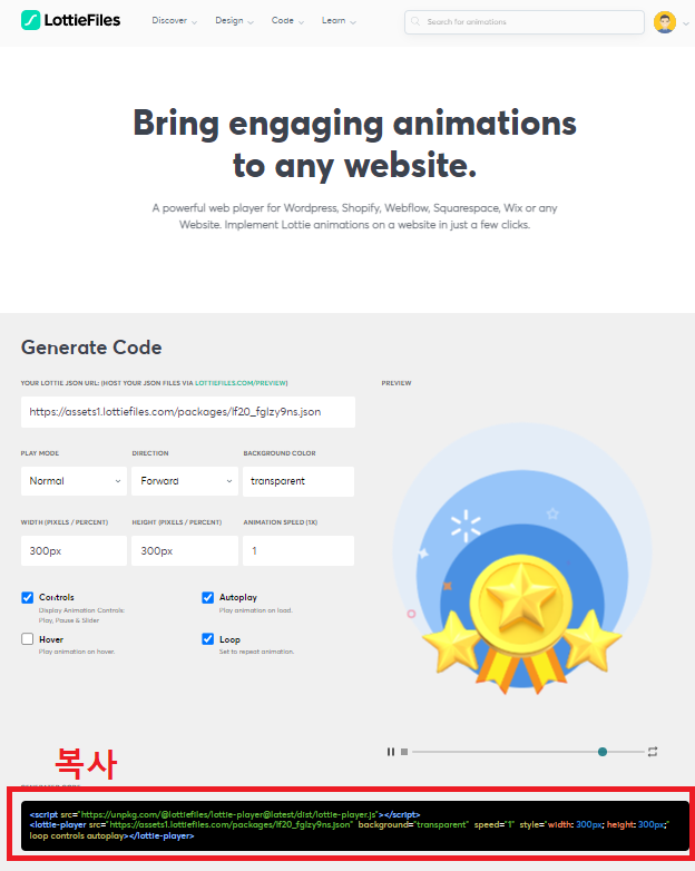 url 은 아까 LottieFiles 사이트의 아래 부분에서 복사하면 됩니다.