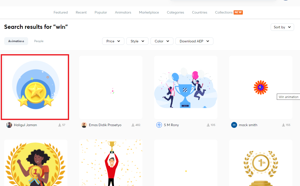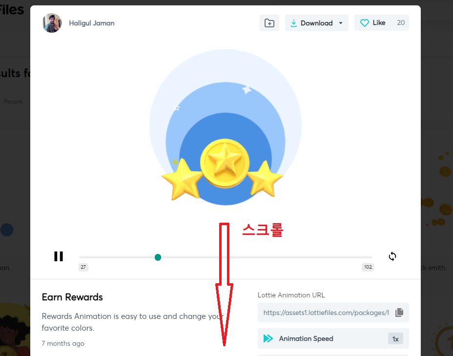 우선 LottieFiles 에서 원하는 Animation 을 찾습니다.