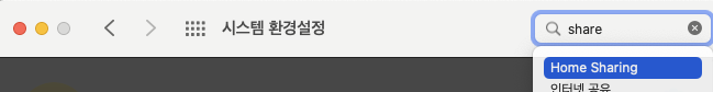 검색에 Share 라고 입력하면 "Home Sharing"이 나옵니다. 클릭.