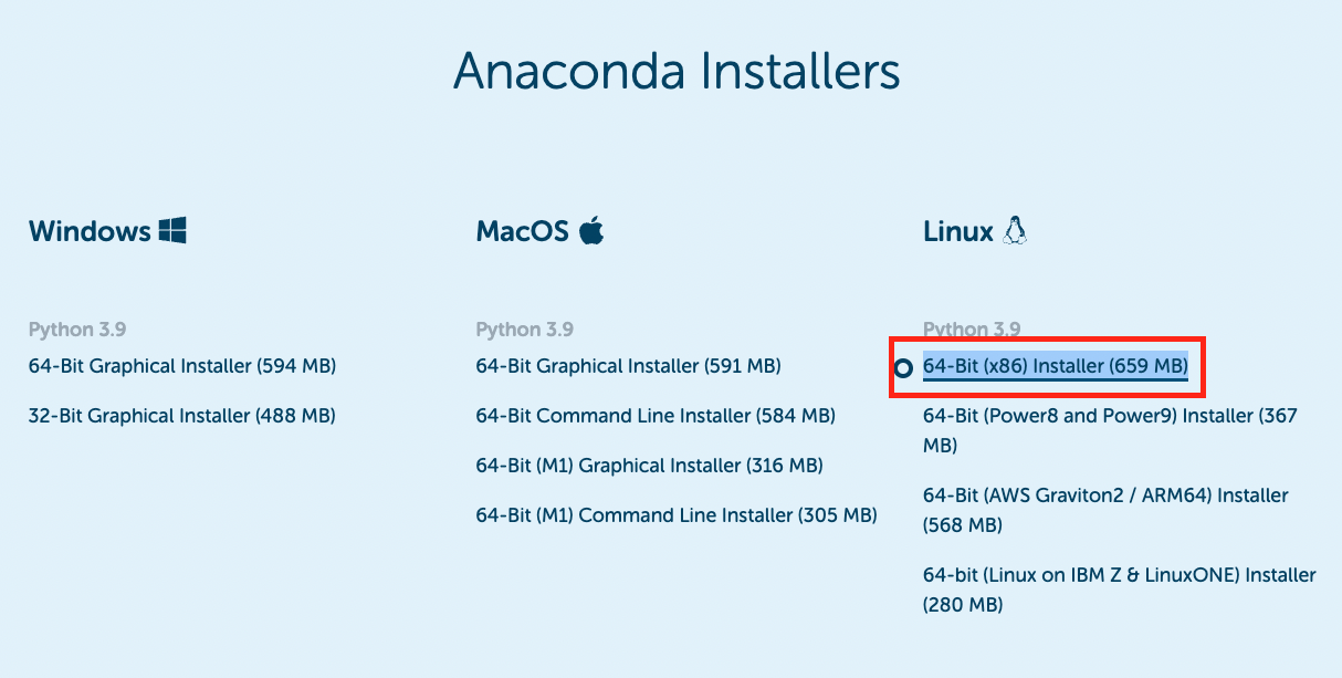 $ wget https://repo.anaconda.com/archive/Anaconda3-2022.05-Linux-x86_64.sh