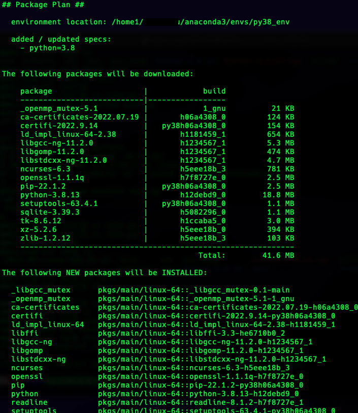 $ conda create --name=my_test_env python=3.8