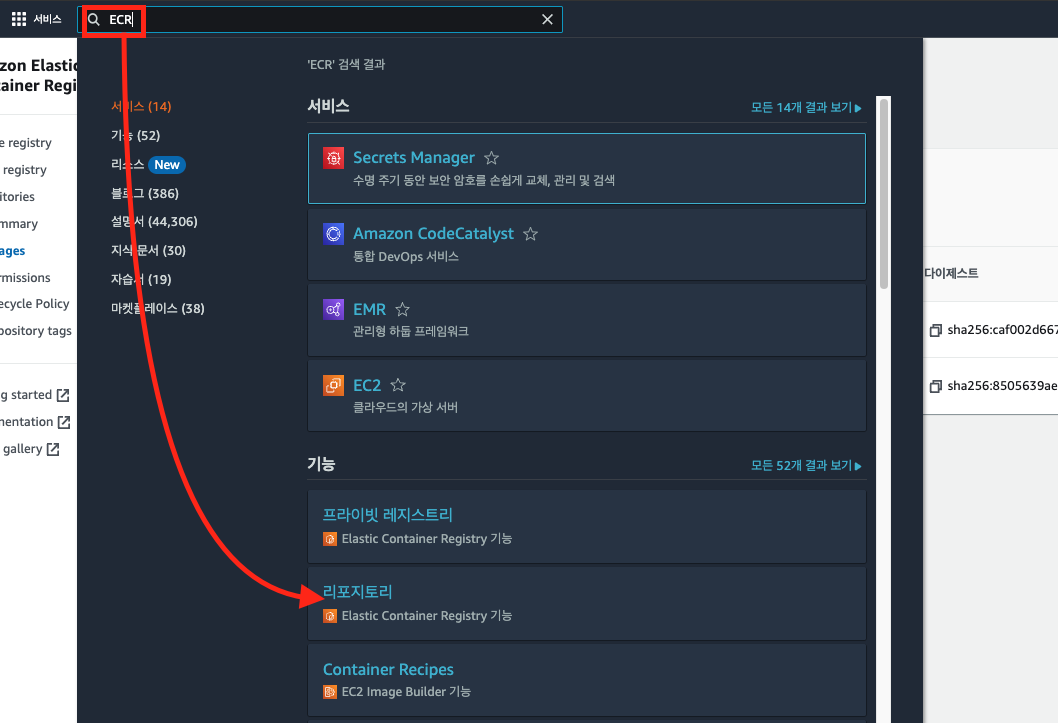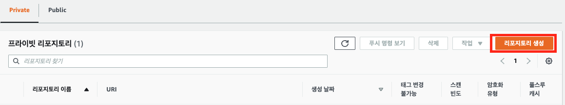 여기까지 하고, 도커 이미지를 생성 후에 올려야 할 곳인 ECR(Elastic Container Registry)에 먼저 가봅니다.