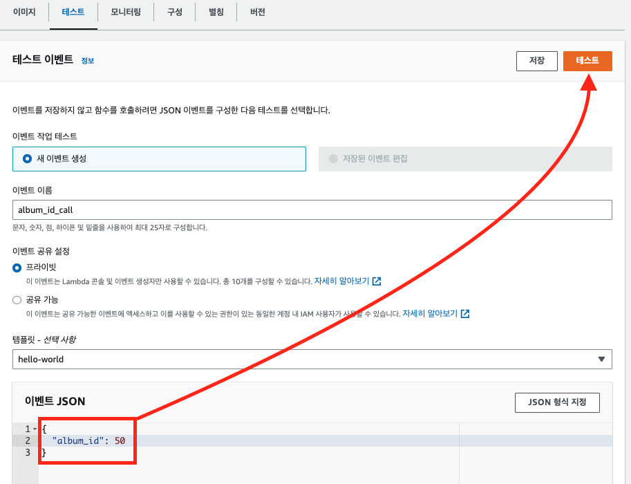 이전 포스트에서 실행했던 것 처럼 "테스트" 텝에서 새 이벤트를 생성하고 파라메터를 넘기면 정상 작동하는것을 볼 수 있습니다.
