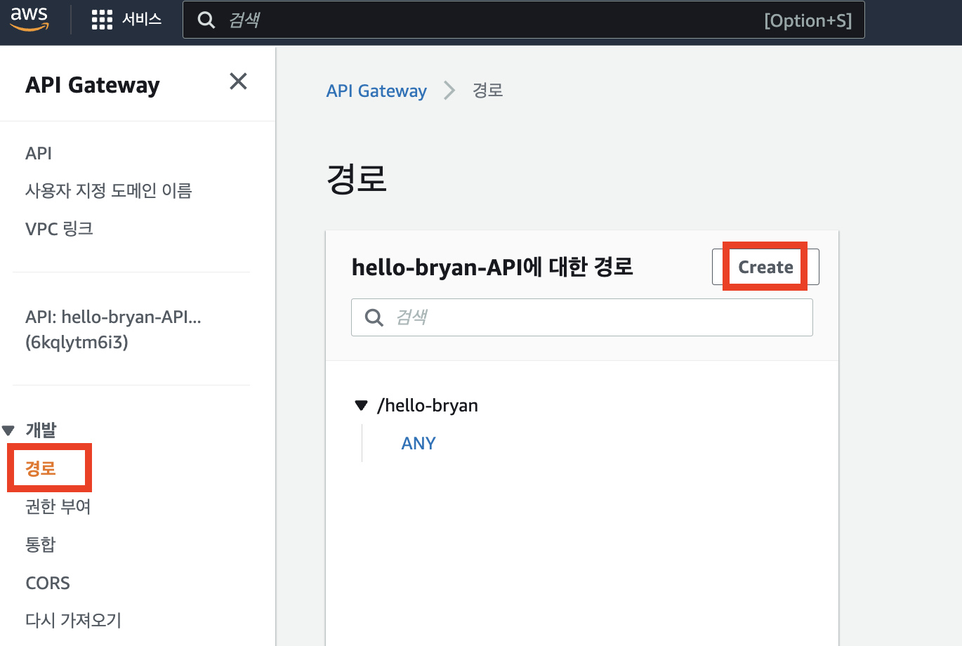 좌측 메뉴에서 "경로"를 클릭하고 Create 를 눌러서 새로운 경로를 생성합니다.