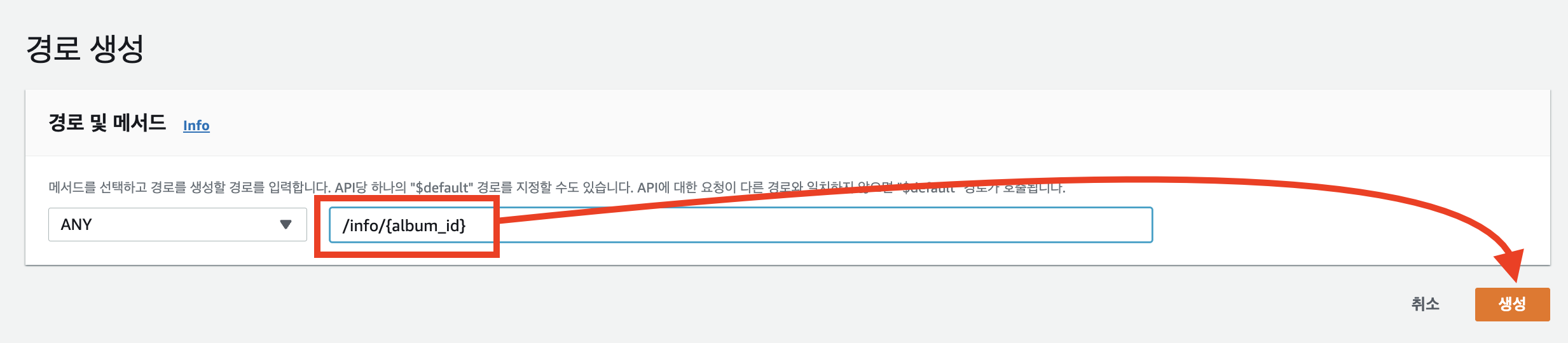 /info/{album_id} 를 입력하고 생성을 누릅니다.