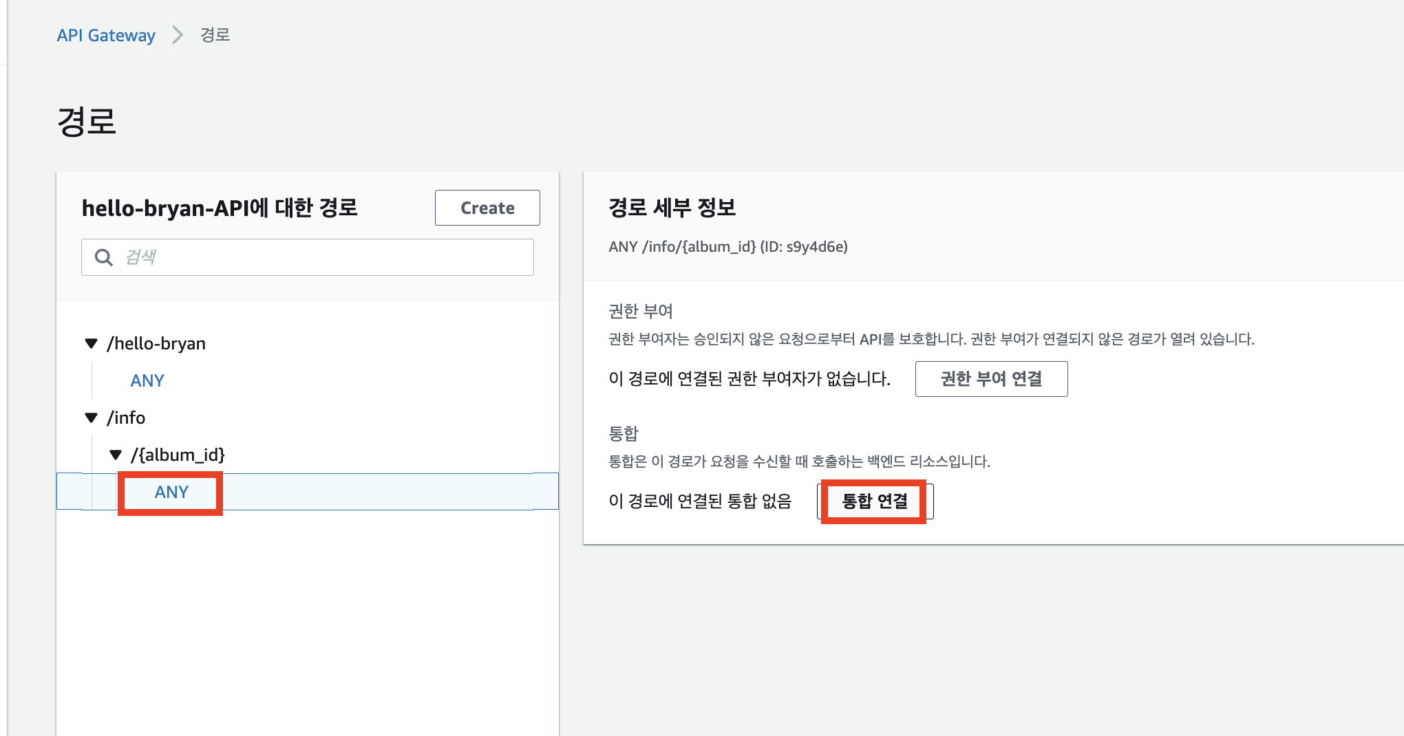 경로가 생성되면 ANY를 클릭해서 통합 > 통합연결 을 클릭합니다.
