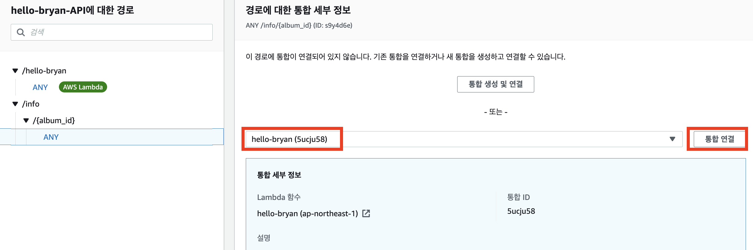 hello-bryan을 선택하고 통합연결을 클릭합니다.