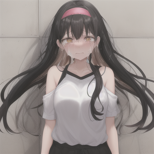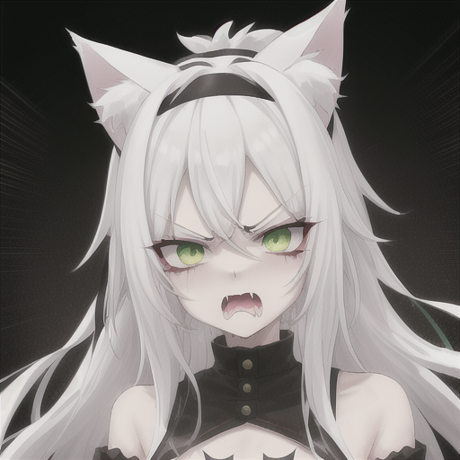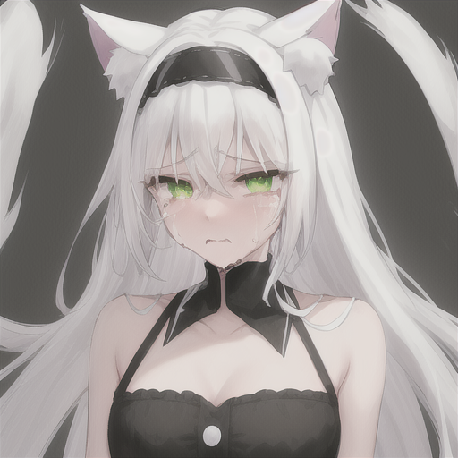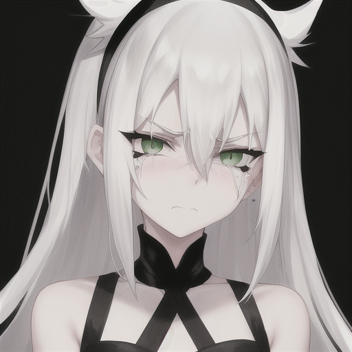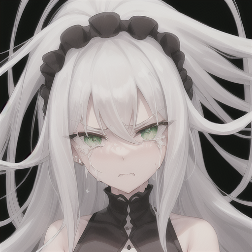White hair, black monochrome hairband, green eyes, teary face, facing sideways, upper body, drag with shoulders, slim jawlineWhite hair, black monochrome hairband, green eyes, crying face, flowing tears, looking sideways, upper body, drag with shoulders, slim jawlineWhite hair, colorful black hairband, cat ears, green eyes, crying face, flowing tears, face turning from the side, upper body, drag with shoulders, slim jawlineBlack hair, colorful hairband, brown eyes, crying face, flowing tears, crying out loud, full bodyWhite hair, colorful black hairband, cat ears, green eyes, angry look, screaming mouth shape