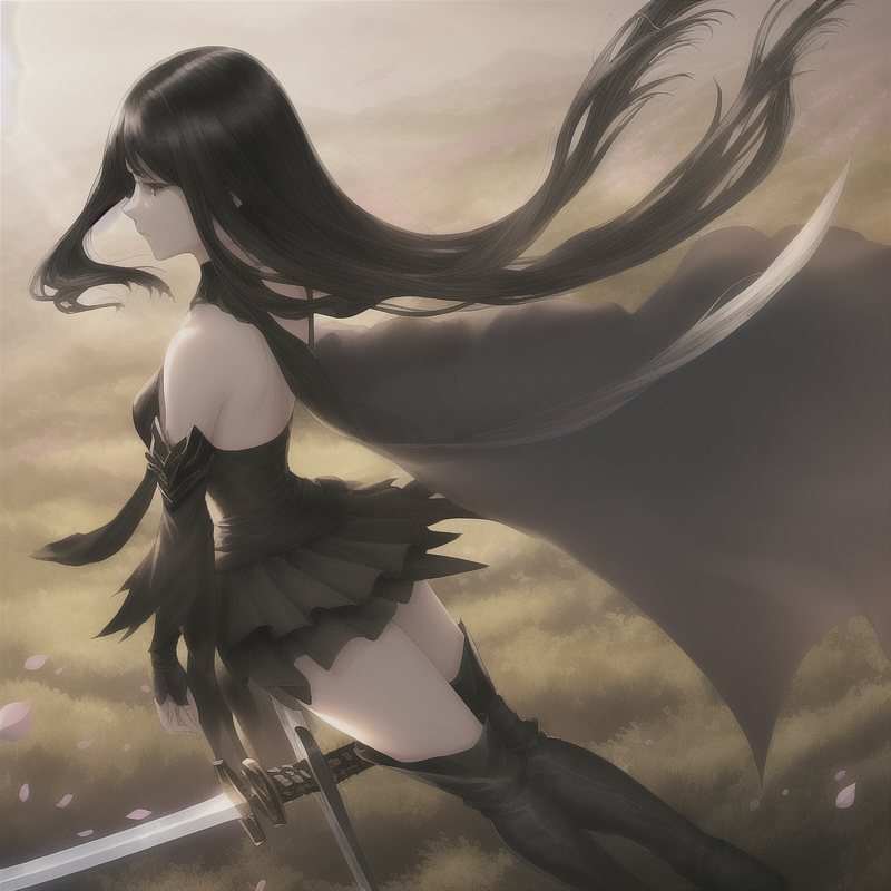 Black hair, shoulder-length hair, beautiful woman, full body, graceful dress, hill with flying petals, dramatic sunlight, character's gaze is camera view, high definition, back view, slim, short skirt, knee-high boots, Black boots, sword in hand{{{ 1man }}}, full body, Legendary sword, knight, flaming sword, strongest man, powerful. By Makoto Shinkai, Stanley Artgerm Lau, WLOP, Rossdraws, James Jean, Andrei Riabovitchev, Marc Simonetti, krenz cushart, Sakimichan, D&D trending on ArtStation, digital art.portrait of a 20-year-old girl anime nordic
