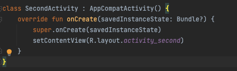 그리고 startActivity() 가 아닌 launch 로 SecondActivity 를 호출합니다.