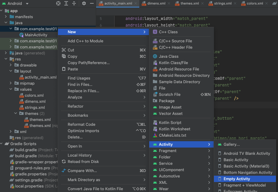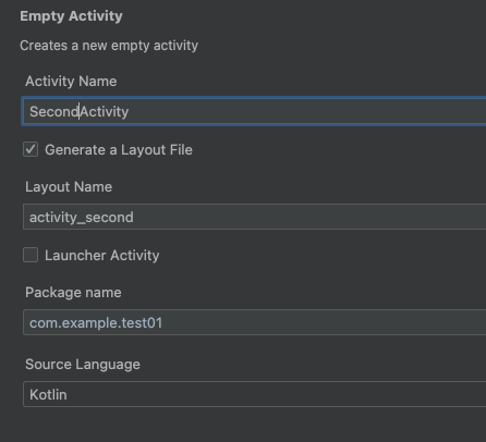 MainActivity 와 같은 Package에서 우클릭 > New > Activity > Empty Activity