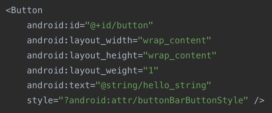 또는 아래와 같이 style="?android:attr/buttonBarButtonStyle" 을 button 에 추가하면 경고 메시지가 없어집니다.